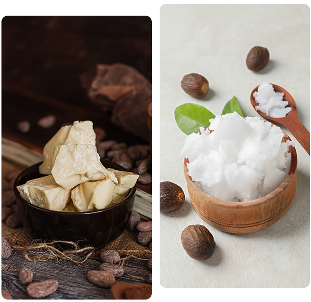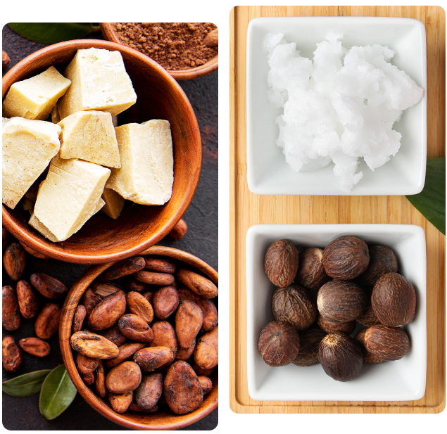 - Le beurre de cacao, réputé pour ses propriétés adoucissantes, est un ingrédient clé pour les baumes et lotions.